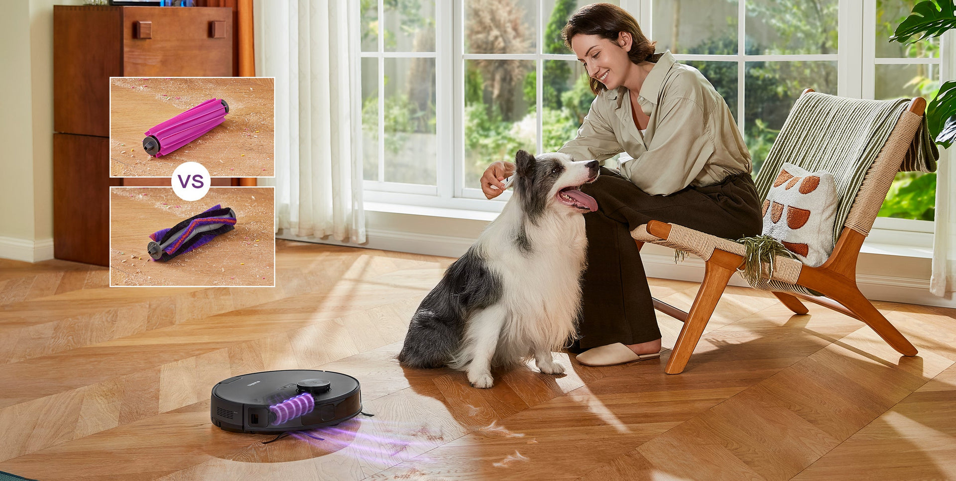 The newly designed rubber roller brush significantly reduces hair tangling, improving anti-wrap effectiveness by 14%*, making it fantastic for pet owners and households where hair is frequently found on the floor.
