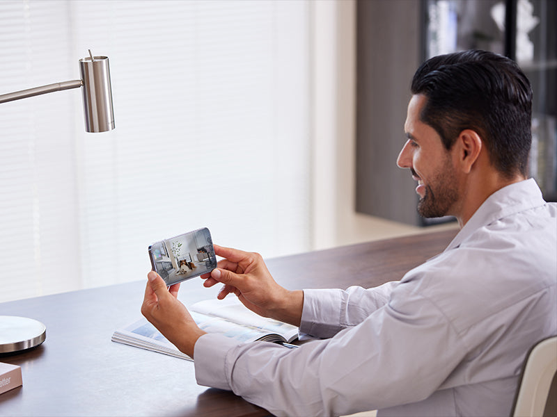 Interact with your pets remotely through real-time video monitoring when you're not at home.