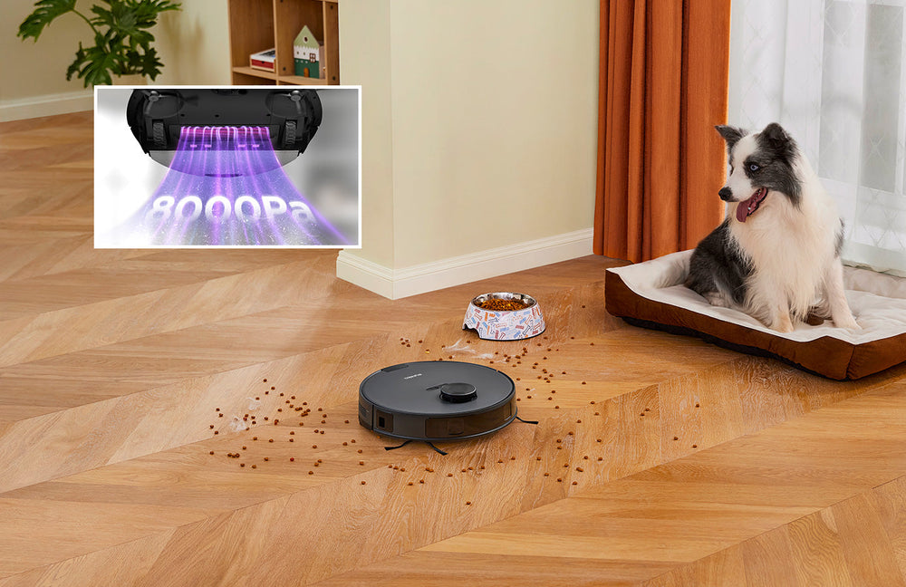 A self-developed motor allows the E20 Plus to deliver an impressive 8000 Pa of suction power—a 100% improvement over the previous model. This substantial increase in power enables the E20 Plus to effortlessly pick up heavier debris like chocolate chips. It also provides superior performance on carpets, effectively removing deeply embedded dust and ensuring a comprehensive clean.